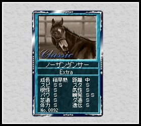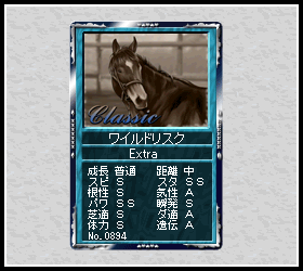 種牡馬としてアメリカで確固たる地位を築き上げ、ラウンドテーブルなどを輩出。現在直系は、衰退してはいるが、母父として優秀な成績を収めている。 | 天皇賞・秋と有馬記念を連勝した名牝。 馬体の悪さから「貧弱な田舎娘」と言われながらも、逆境をバネに競馬界を駆け抜けた。 |