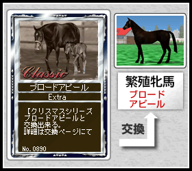 (アイテム交換所での交換となります。) - 入手した繁殖牝馬カードは、アイテム交換所で再度交換する必要があります。