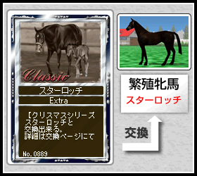 日本競馬界屈指の名牝「スターロッチ」などが、クリスマスシリーズとして登場します。