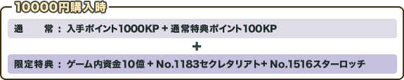 10000円分のみとなり、特典の配付は各購入額につき1度となります。