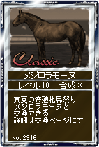 「バラの花束」 No.2807 バラの花束 「夏休み調教カードセット祭り」 No.2911 2012年まんまるアイス No.2912 2012年入道雲 No.2915 2012年金魚 「真夏の繁殖牝馬祭り」 <繁殖牝馬カード> No.2337 ギフトオブザナイト No.2396 ブロードアピール No.2422 レーヴディソール No.2452 オグリローマン No.2454 ラインクラフト No.2482 クリフジ No.2568 フラワーパーク No.2716 ウィッシングウェル No.2717 ナタルマ No.2719 グーフド No.2916 メジロラモーヌ(レア個性) No.2917 ハギノトップレディ(レア個性) No.2918 イットー(レア個性) No.2919 ノースフライト(レア個性) No.2920 アグネスフローラ(レア個性) |