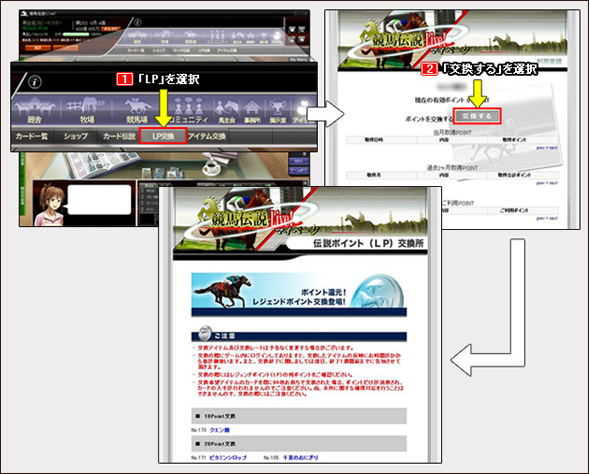 - 伝説ポイント(LP)交換所ページの「交換する」ボタンをクリック。