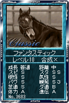 個性 ・天馬(レア) アビリティ ・スローペースS(レア) ・ロングスパート 系統 ・サドラーズウェルズ |