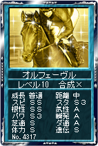 ・マッスルアーマー(レア) ・剛心臓(レア) 個性 ・闘神(レア) 系統 サドラーズウェルズ |