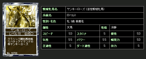 個性 アイアンホース(レア) アビリティ ・剛心臓(レア) ・ソニックフォーム(レア) ・マッスルアーマー(レア) 系統 ノーザンダンサー |