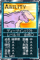 アイアンホース(レア) アビリティ ・宝塚記念(重賞) ・剛心臓(レア) ・ナタの切れ味(レア) 系統 ヘイロー |