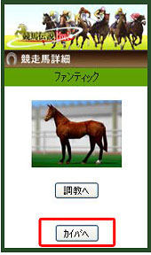 - カイバを実行する場合、競走馬詳細画面で「カイバへ」を選択し実行してください。